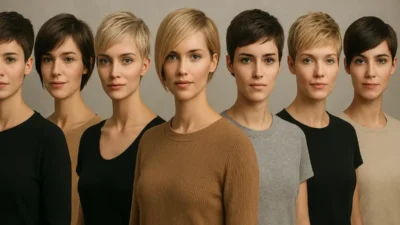 - Pour adoucir les traits : Si vous avez un visage carré ou anguleux, nous recommandons vivement la « frange rideau » ou des mèches bouclées. Associées à un turban souple, elles apportent un flou artistique et une douceur immédiate aux contours du visage.
